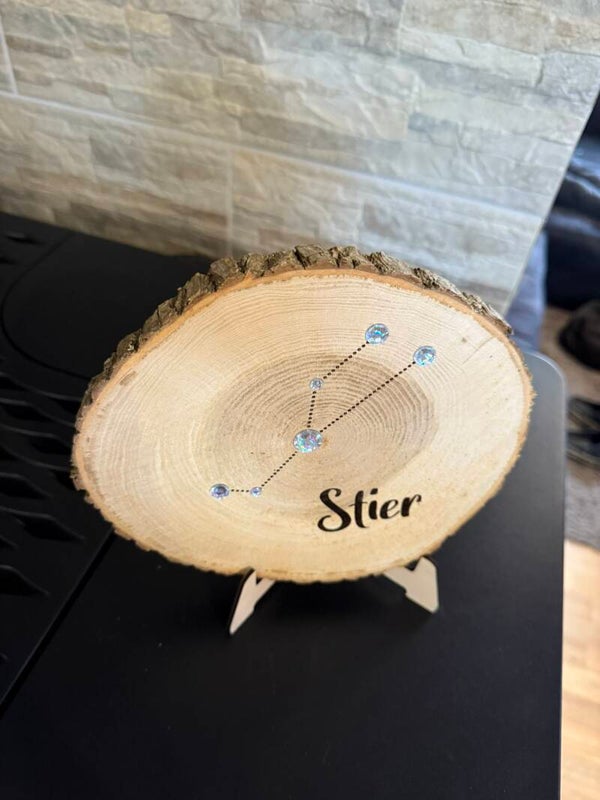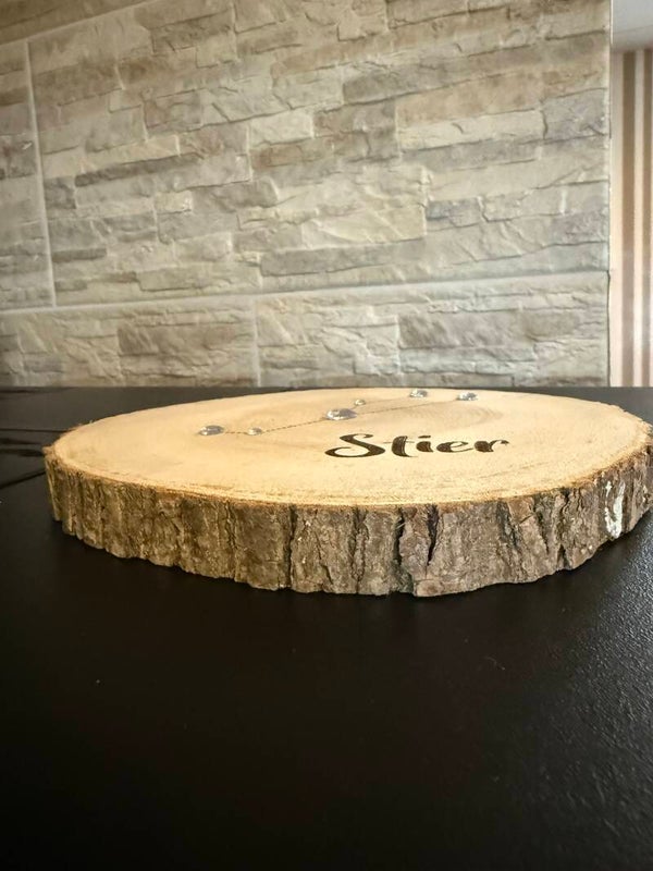 Diese liebevoll gestaltete Baumscheibe vereint die Schönheit der Natur mit der Magie des Nachthimmels. Aus Eschenholz gefertigt (Ø ca. 20 cm) und naturbelassen mit sichtbarer Rinde, bringt sie eine warme, erdige Ausstrahlung in jedes Zuhause. Das Besondere: Dein gewünschtes Sternbild wird per Hand eingebrannt – detailreich und mit Sorgfalt umgesetzt.