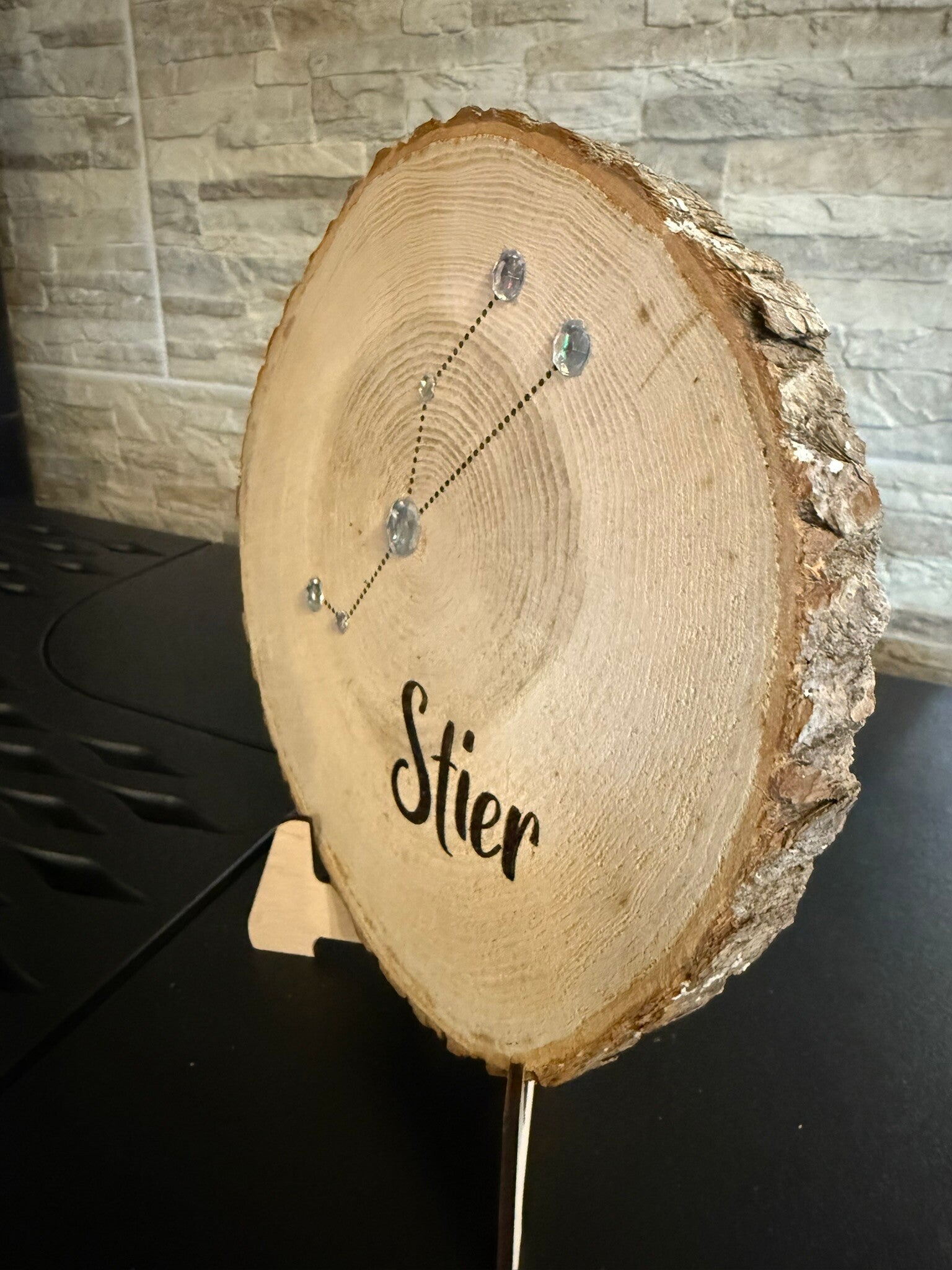 Personalisierte Baumscheibe mit Sternbild – Ein Stück Himmel aus echtem Holz