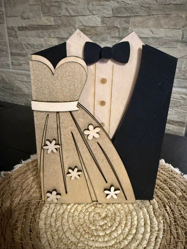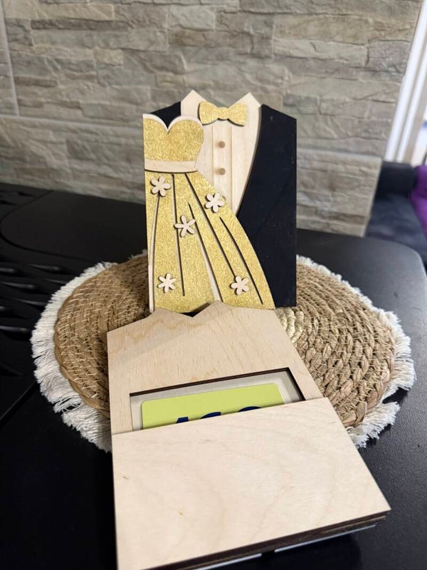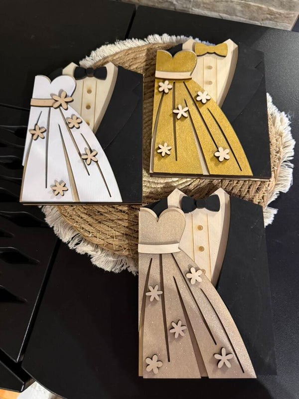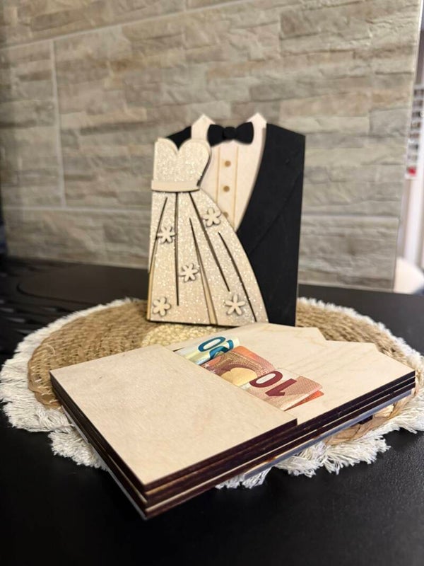 Diese edle Hochzeitskarte aus stabilem 3 mm Holz vereint Design und Funktion in einem besonderen Erinnerungsstück.