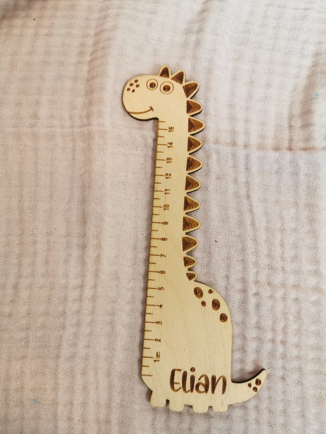Das Lineal wird aus 3mm Holz angefertigt und kann mit dem dem Namen des Kindes personalisiert werden.