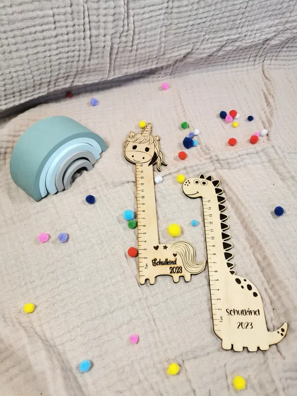 Verleihe der Schuleinführung deines Kindes einen magischen Touch mit unserem einzigartigen Lineal in Form eines Dinosauriers oder Einhorns!