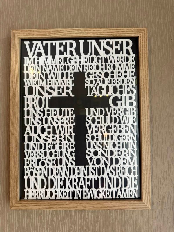 Das zeitlos schöne „Vater unser“ aus weißem Acryl ist ein edles Dekorationsstück für jedes Zuhause.